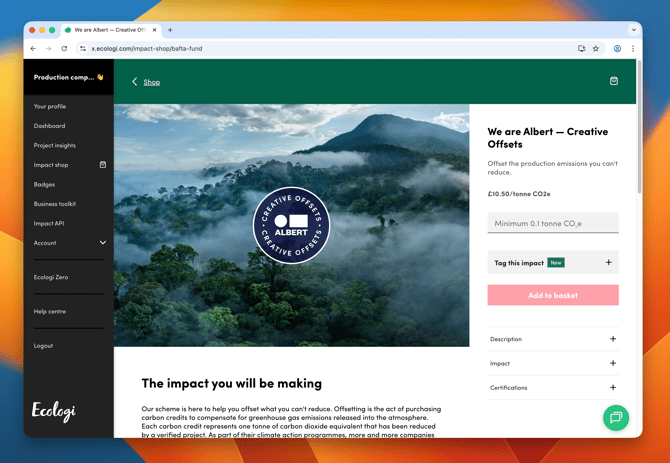 Important: Please sign up via this link rather than Ecologi's other business profiles, as this will link your production company to the Albert 'Parent' profile.
