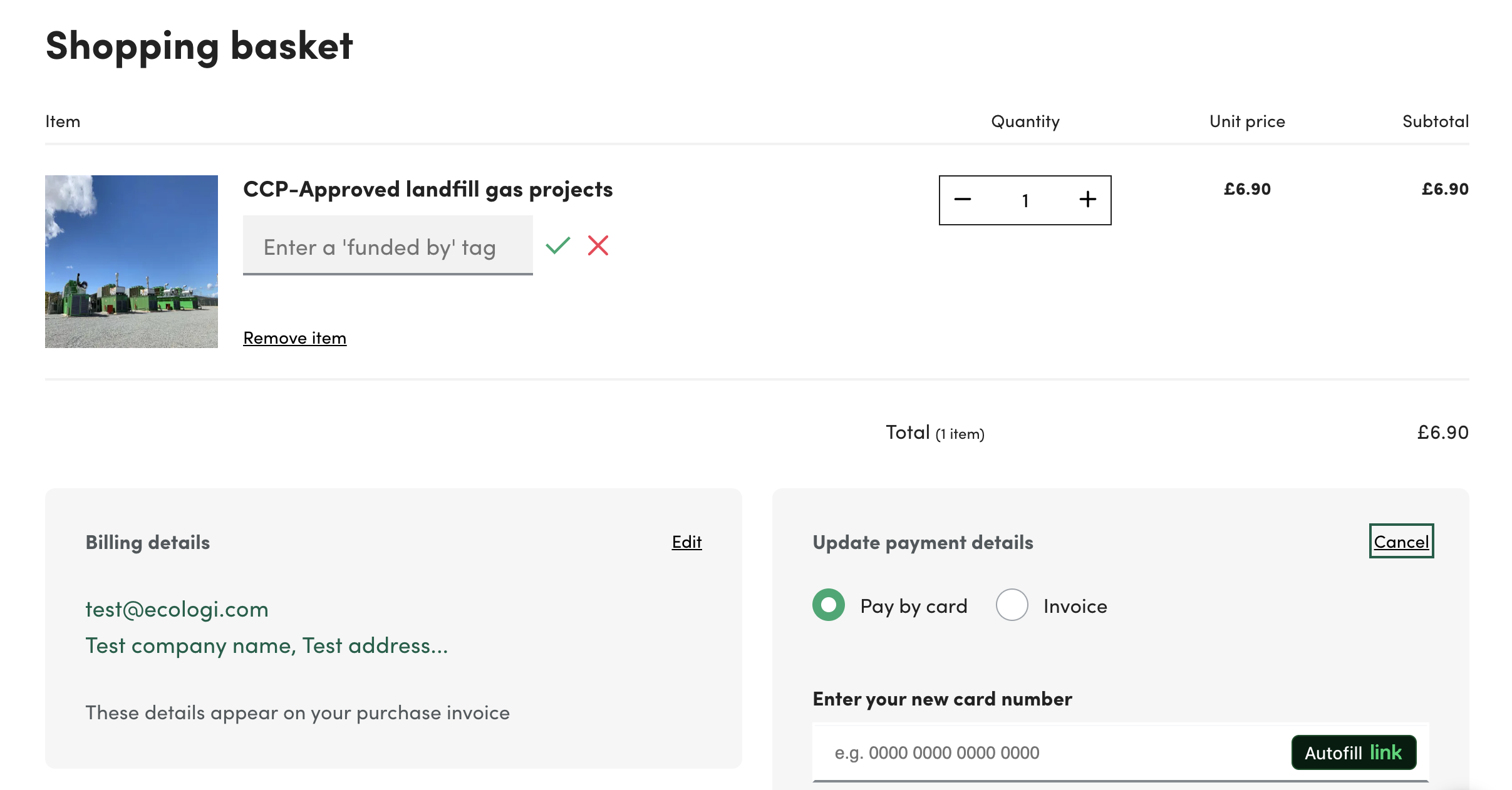 • If you pay by card, the tiles representing your impact will be added to your Ecologi