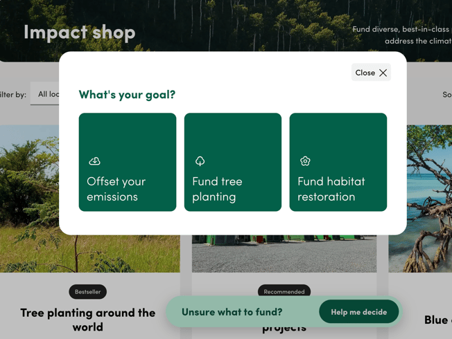 Whether you're a subscriber or a pay-as-you-go customer, the Impact Shop is your place to fund high-quality climate solutions and nature restoration projects - going beyond subscriptions to drive real, meaningful impact.
