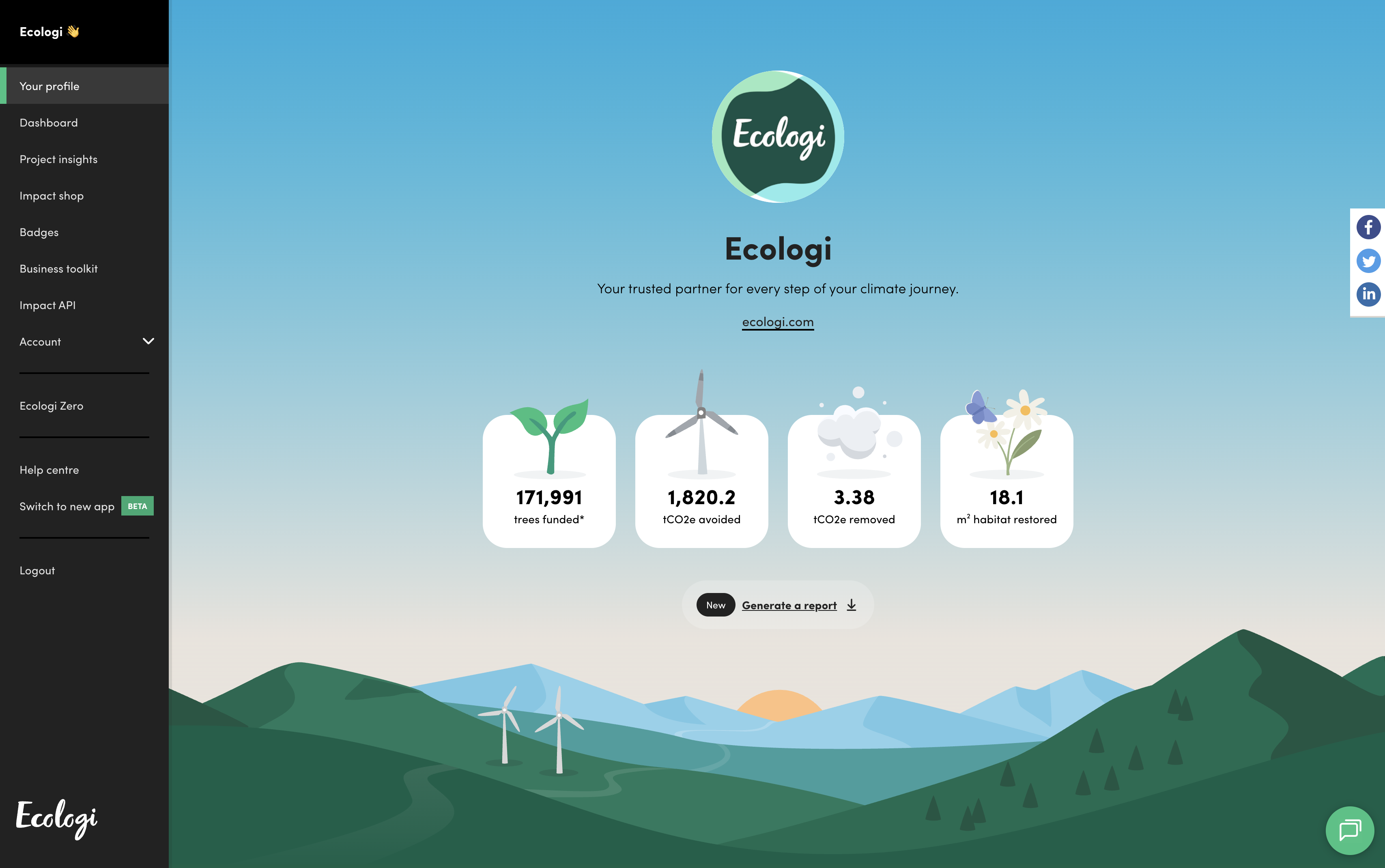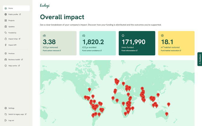 We're currently in the process of migrating customers to our new Ecologi app, which is live now in BETA. While the new app is being built out, some features are still only available in the legacy platform - so you can switch between the two at any time.